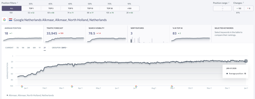 Door vooraf na te denken over structuur, zoekgedrag en seizoensinvloeden, is er zichtbaarheid ontstaan die meebeweegt met het jaar. Niet alleen tijdens de opening of in drukke wintermaanden, maar ook daarbuiten.